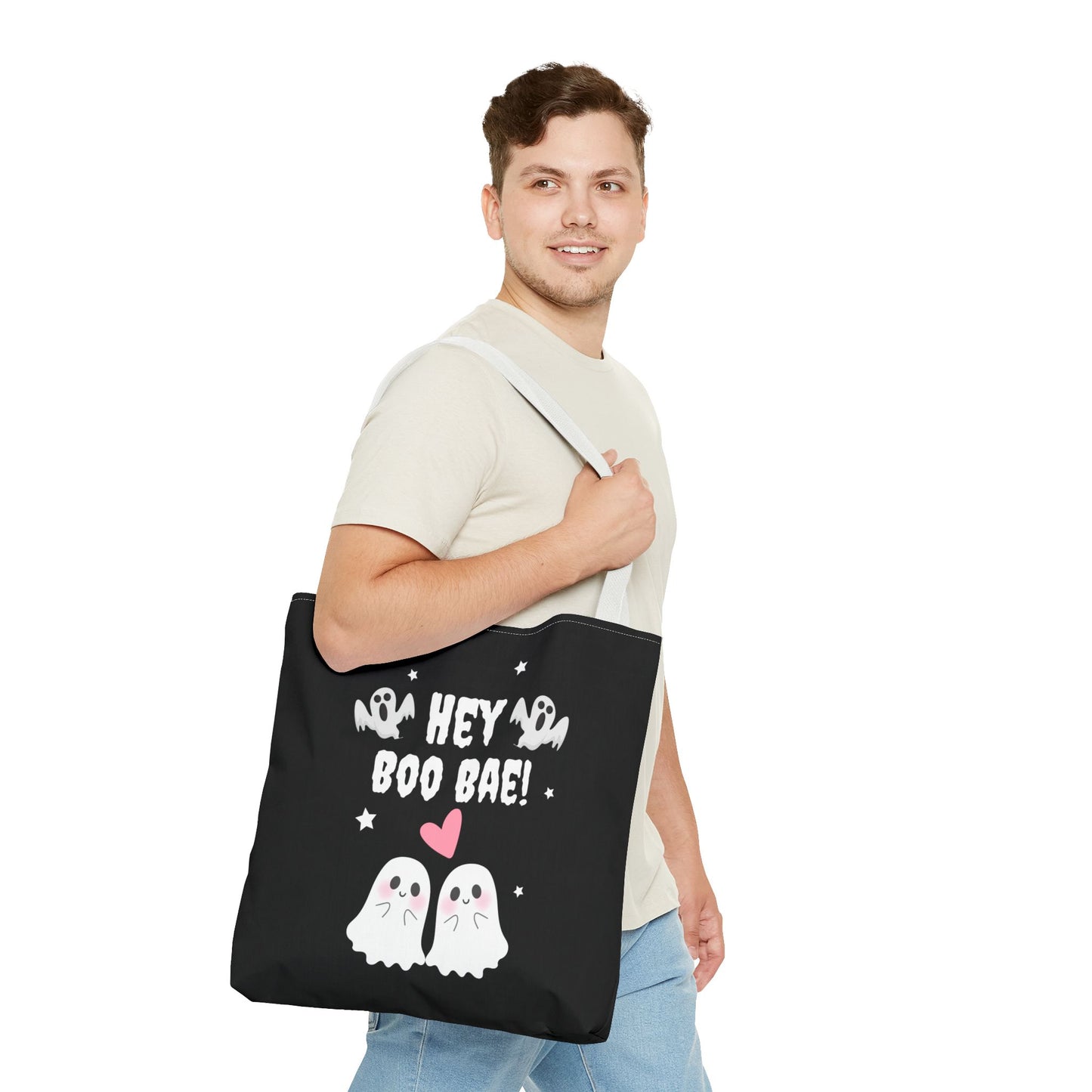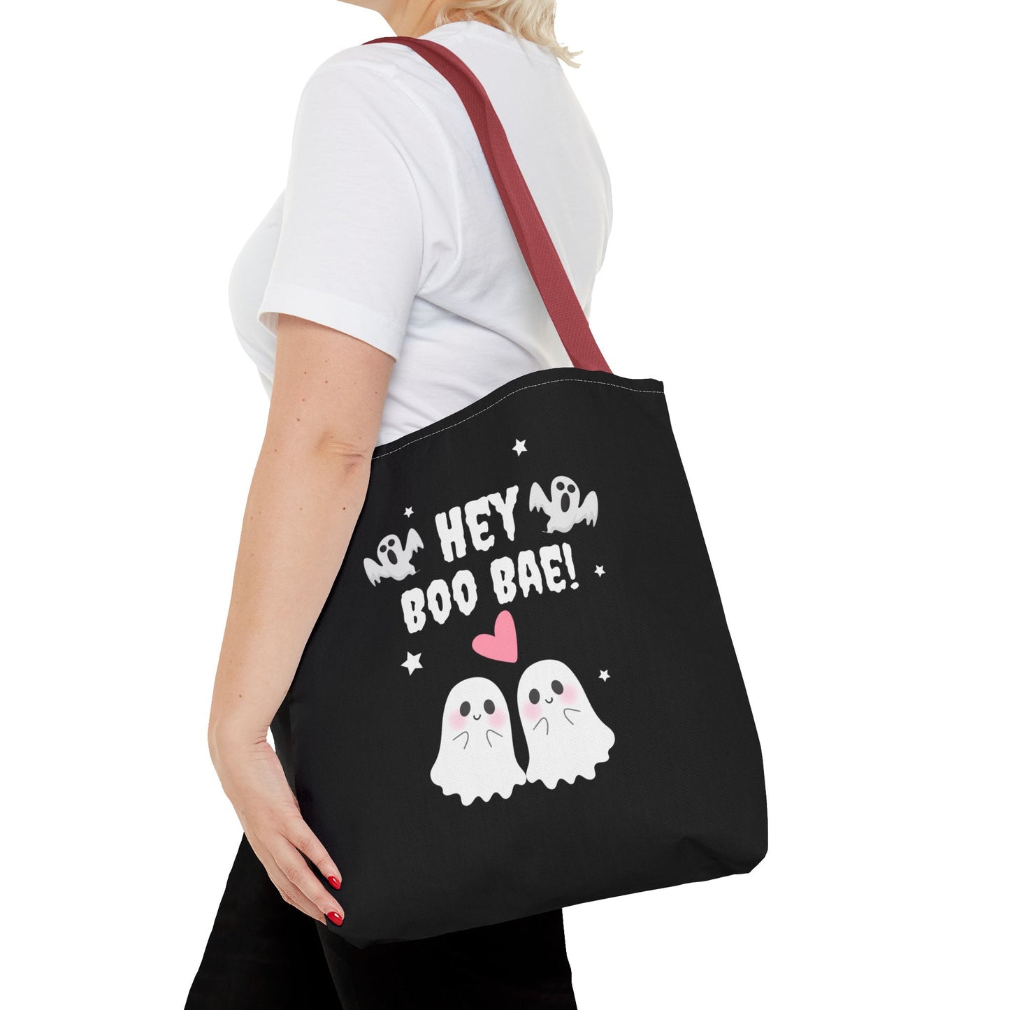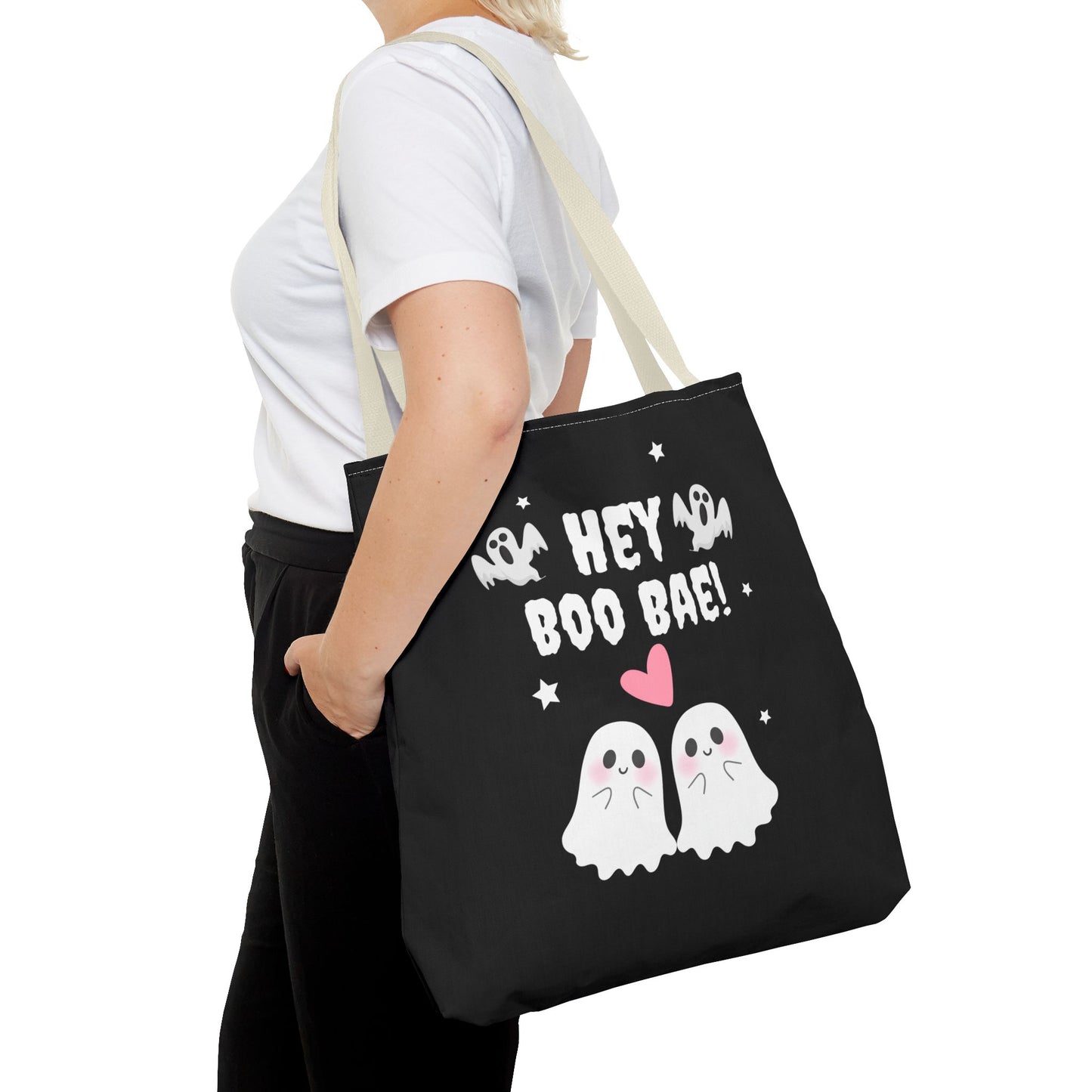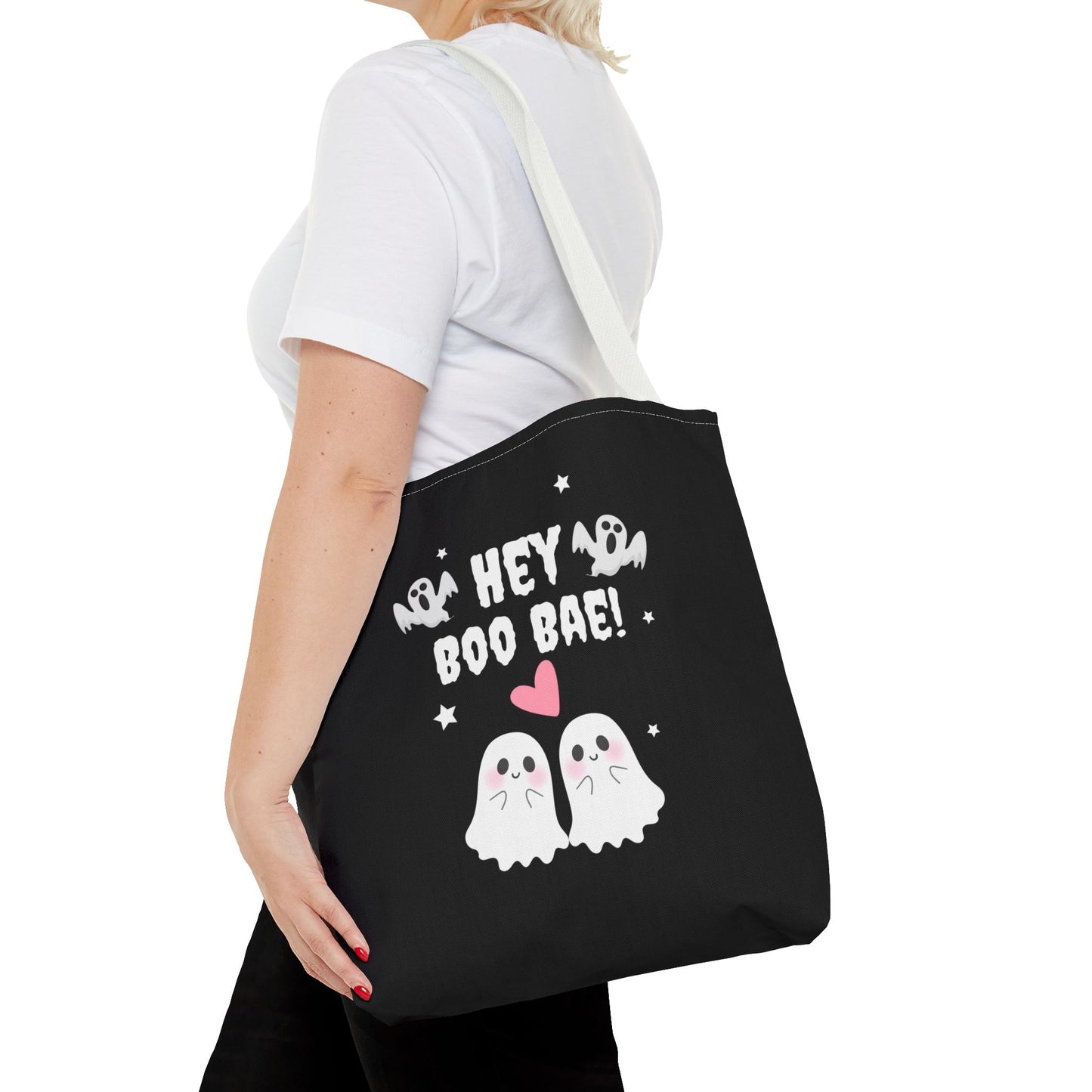Cute Ghost Couple Boo Bae Halloween Fall Spooky Season Trick or Treating Candy Bag Reusable Halloween Lunch Tote Bag
