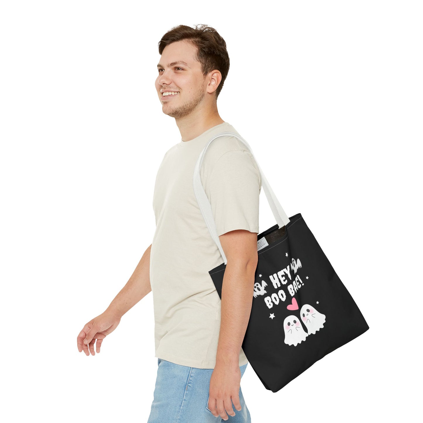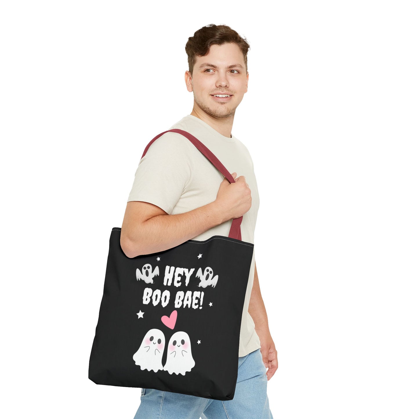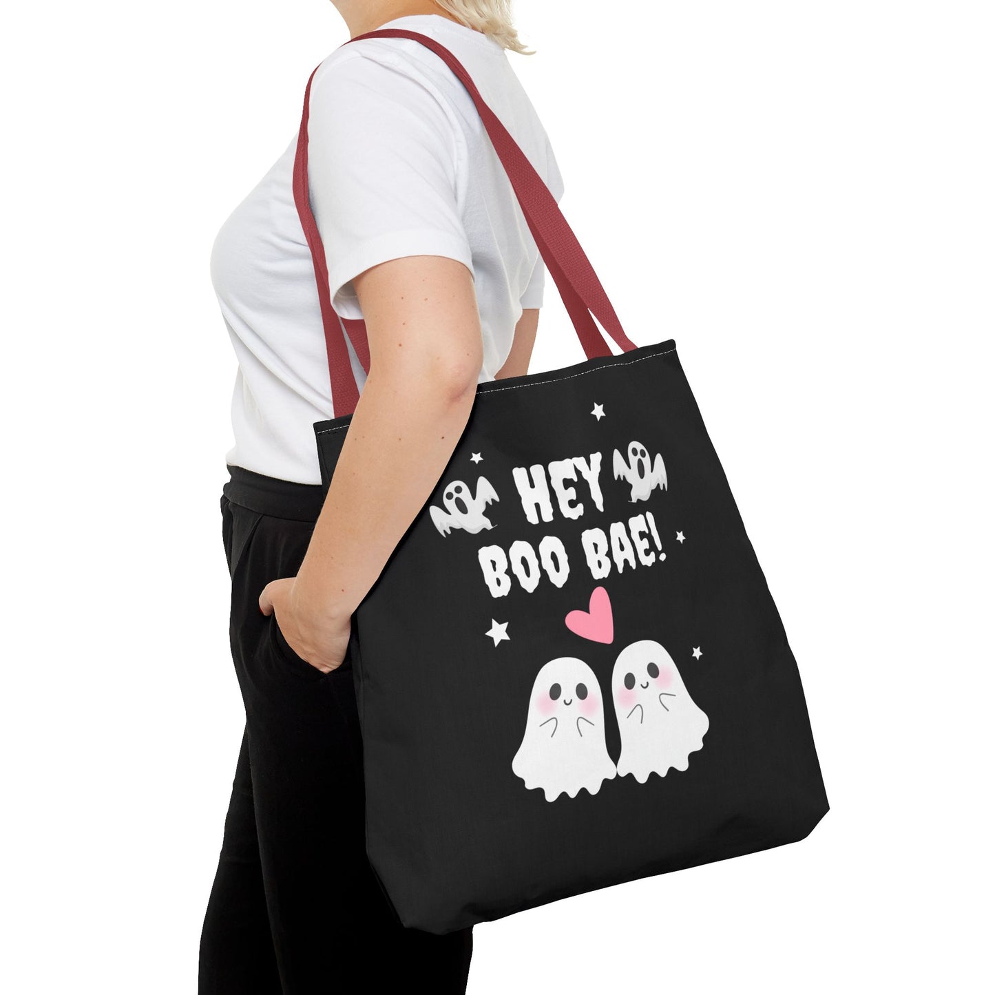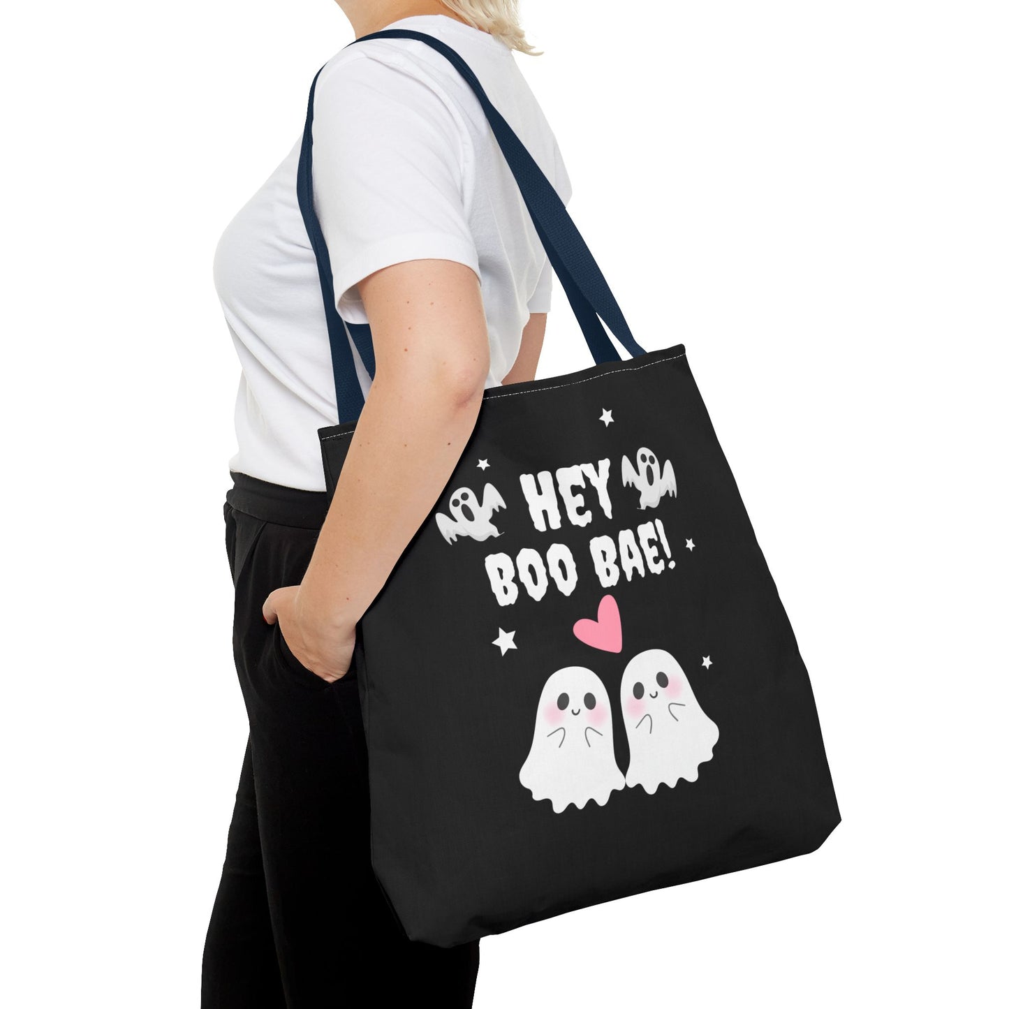 Cute Ghost Couple Boo Bae Halloween Fall Spooky Season Trick or Treating Candy Bag Reusable Halloween Lunch Tote Bag