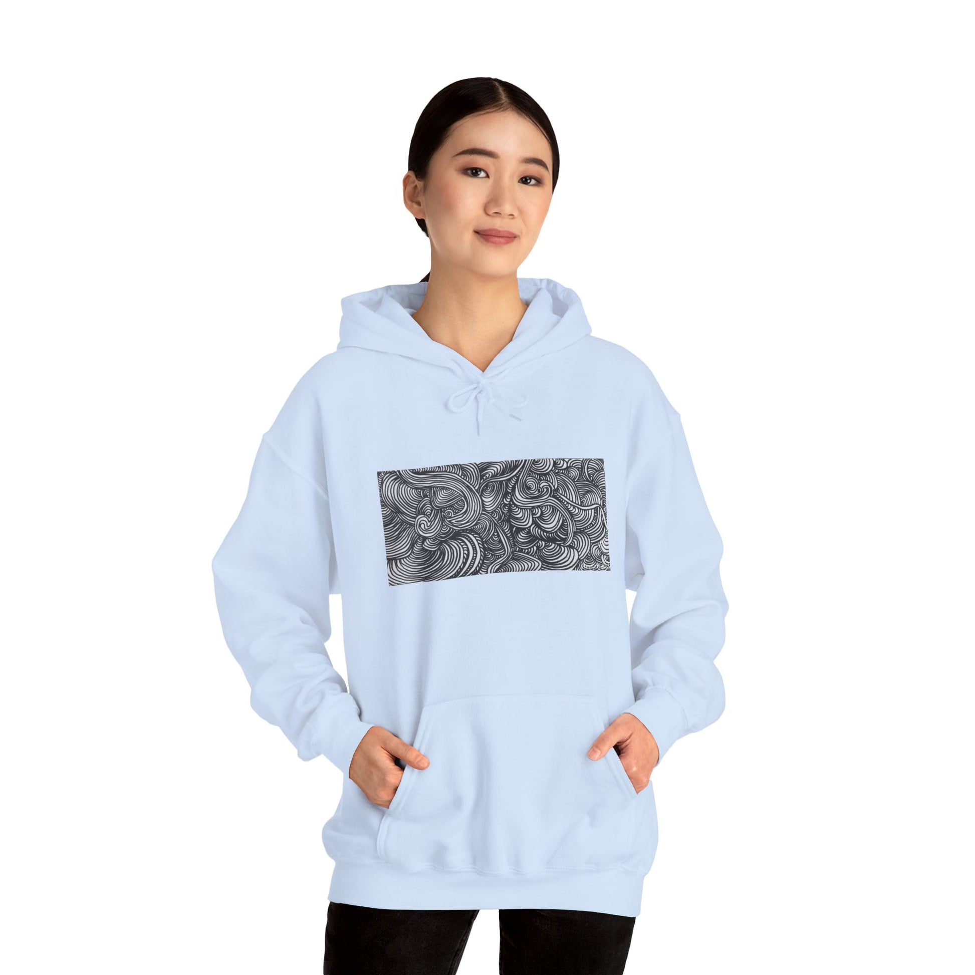 Unisex Heavy Blend™ Original Minimalist Line Art Midsize Print Hooded Sweatshirt - Liquid