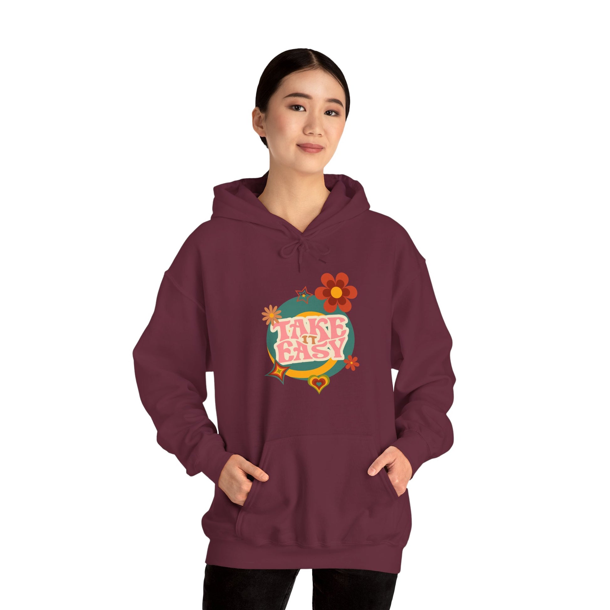 Unisex Heavy Blend™ Retro Vibes Take It Easy Hooded Sweatshirt